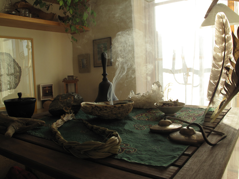 Sie ist eine rituelle Handlung mit Klang, Räucherwerk und für die im Raum zu erzielende Wirkung notwendige Eingebung meinerseits.